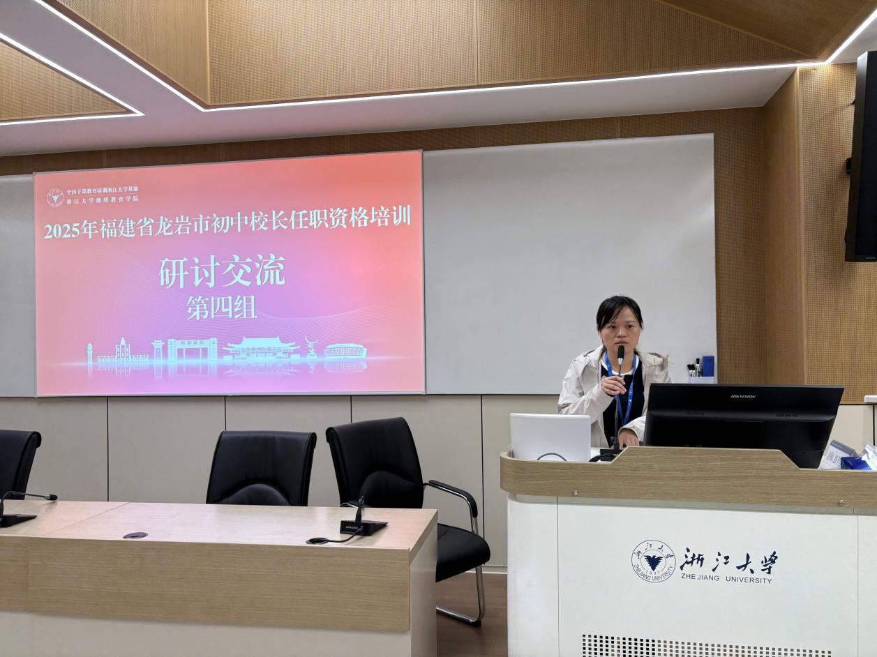11月10日,研修班在浙江大学华家池校区举行开班仪式。龙岩市教育科学研究院副院长杨佳攀、龙岩市教育科学研究院副院长简秋兰、龙岩市教育科学研究院原副院长苏秀扬出席开班式,简秋兰作动员讲话。她强调,全体学员要珍惜本次学习机会,深入思考、积极交流,努力将所学的前沿理念与先进经验切实转化为推动区域教育高质量发展的实践能力与创新行动。